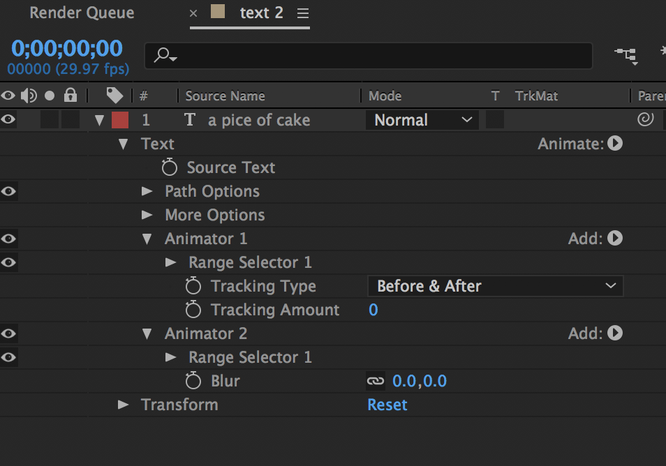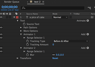 3. 在文字圖層中增加效果,Tracking、Blur 兩個效果。