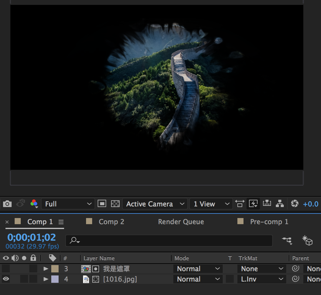 1. 一個圖層只能擁有一個Track matte Key (動態遮罩)。